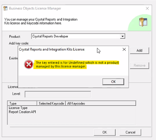 Solution: Set the CRYSTAL_VERSION SYSMGR key to a value other than “XI”, which launches a full Crystal installation. The version is specified in “System Manager” and the license is set in the “LicenseManager” application.